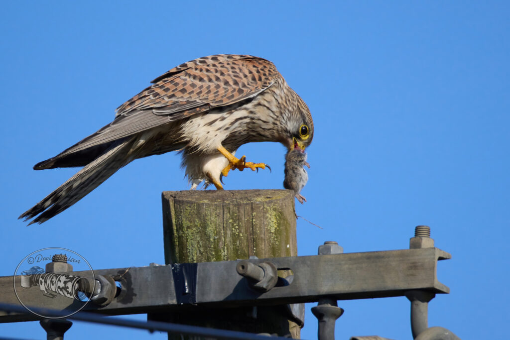 Alles andere als ein Aprilscherz und viel mehr einer der schönsten Greifvögel, die wir hier bei uns haben, ist der Turmfalke. Nach dem Mäusebussard ist er außerdem der zweithäufigste derer und in ganz Mitteleuropa der zahlenmäßig häufigste aller Falken. Ein wirklich regelmäßig anzutreffender Jäger, der mich vor ein paar Jahren dazu verleitet hat, in ein wirklich großes Teleobjektiv zu investieren. Groß ist er mit seinen etwa 35cm nicht. Das überbietet so manche Taube. Kommt man ihm etwas näher, offenbaren sich wunderbare Details im Gefieder sowie die großen und tiefschwarzen Augen, mit denen er seine Beute aus großer Entfernung wahrnimmt. Glücklicherweise sind Turmfalken weniger Scheu als andere Greife und tolerieren eine geringere Distanz zwischen ihnen und einem interessierten Menschen. Sicher hast Du schon einmal einen Turmfalken gesehen, wie er in der Luft stehend mit gesenktem Kopf rüttelnd den Boden nach Beute absucht, um sich dann pfeilschnell hinab zu stürzen. Am häufigsten ist das sicherlich an landwirtschaftlich genutzten Flächen zu beobachten. Letztlich ist der Turmfalke aber ein Kulturfolger und lebt überall dort, wo er Nahrung findet. Hauptsächlich sind das Mäuse. Zum Spektrum gehören aber auch Eidechsen, Heuschrecken oder andere Bodenbewohner. Daher kann man ihn auch mitten in der Stadt antreffen, wo er gerne in Kirchtürmen brütet und über Parks, Schrebergärten oder sogar vor unserem Balkon „rüttelt“. Als Brutstätte nutzt er das, was schon da ist. Dachluken, alte Krähennester oder hochgelegene Fenster sind allesamt geeignet. Dankend angenommen werden auch spezielle Nistkästen (Bauanleitung in den Links), die man sich im eigenen Garten aufstellen oder sogar am Haus anbringen kann.