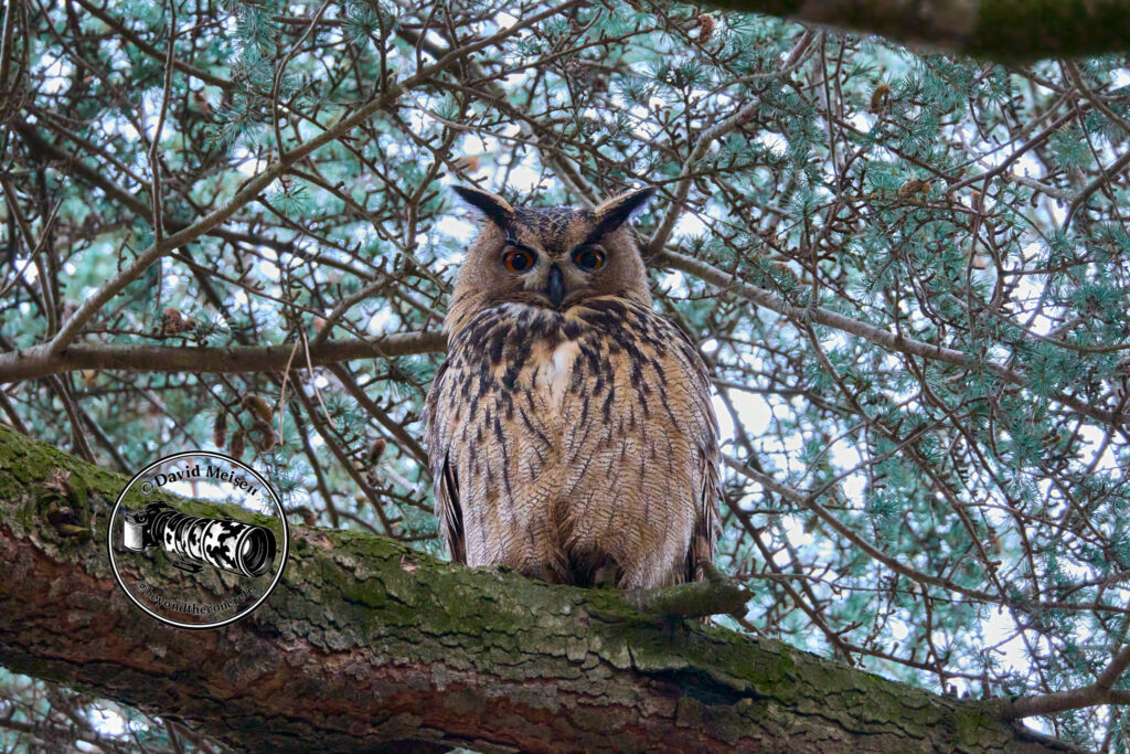 Du siehst zur Begrüßung des neuen Jahres einen Uhu, die größte Eule Europas. Sicher kennst du seinen namensgebenden Ruf und vielleicht hattest du schon einmal das Glück, ihn selber in der Nacht zu hören. Der Uhu ist mit seiner Größe, seinen respekteinflößenden Fängen und seiner ganzen imposanten Gestalt absolut beeindruckend. Da möchte man kein Hase, Kaninchen oder Eichhörnchen sein. Seine Federohren, die überhaupt nichts mit seinem Gehör zu tun haben, sondern einfach nur hübsch aussehen, sind eins seiner „Markenzeichen“.