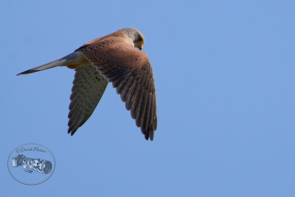 Auf deinem Aprilkalender siehst du einen männlichen Turmfalken, auch „Terzel“ genannt. Er unterscheidet sich vom Weibchen, da er kleiner(häufig bei Greifvögeln) und sein Gefieder anders gefärbt ist. Die Federn seiner Schwingen sind weniger gemustert als die des Weibchens und rostbraun. Am auffälligsten ist jedoch sein Kopf. Während das Weibchen ein rundum eher einheitliches Gefieder hat, ist der Kopf des Männchens gräulich gefärbt und erscheint mitunter sogar blau. Das macht ihn besonders hübsch.