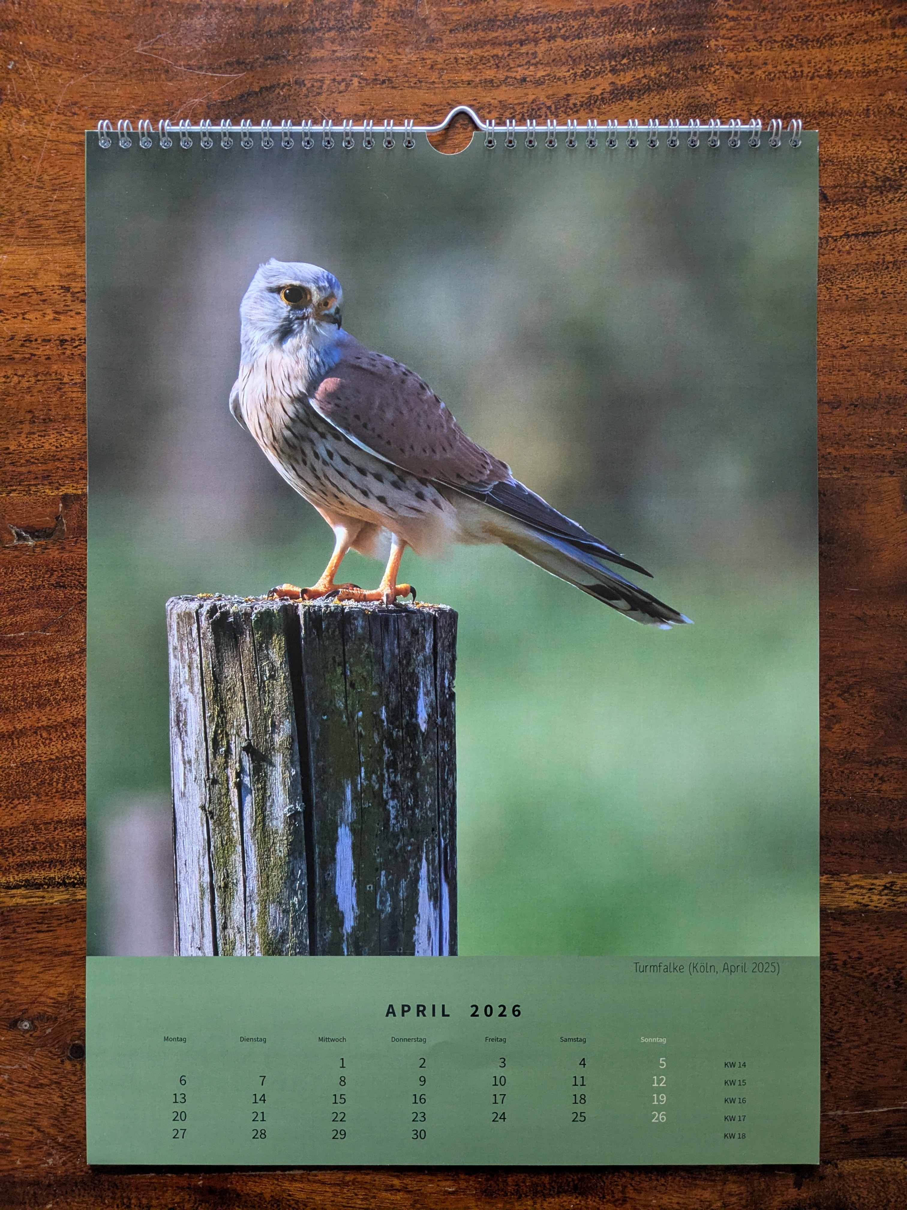 Aufgenommen wurde das Bild übrigens nur wenige Minuten nach dem Foto vom März, direkt an einer Kuhweide am Rheinufer. Ein besonders schönes Beispiel dafür, wie vielfältig das wilde Leben dort ist, wo der Mensch noch nicht alles zugebaut hat. Ein kleines Naturschutzgebiet direkt am großen Fluss bietet vielen Arten einen tollen Lebensraum und insgesamt sind gleich drei Fotos von dort im Kalender gelandet.